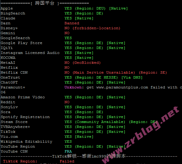 更详细的流媒体解锁情况(来自融合怪脚本):