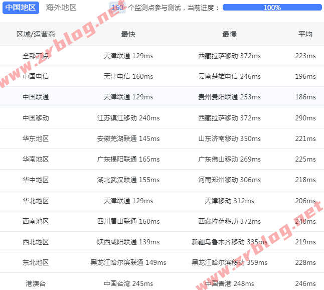 国内三网和港澳台ping测试,延迟跟美国差不多,移动ping值要高一些: