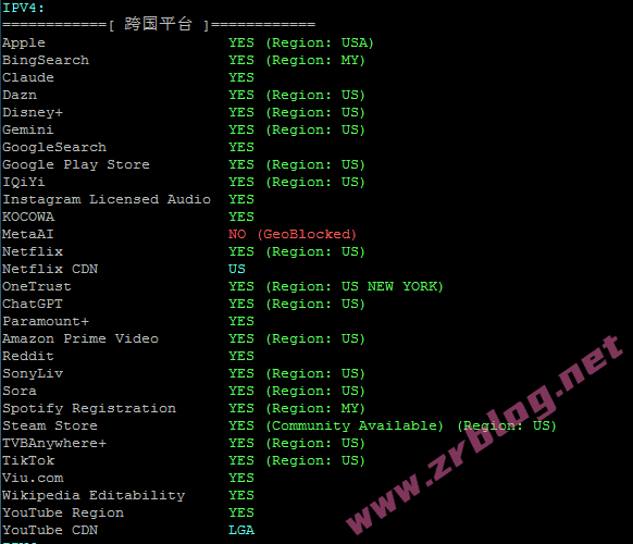 更详细的流媒体解锁情况(来自融合怪脚本):下面是IPv4解锁