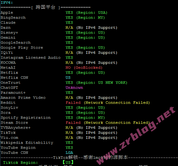 由于IPv6默认开启,测试的时候顺便截图IPv6解锁情况: