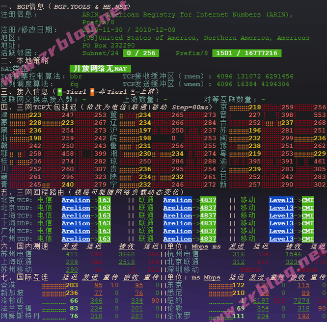 网络质量检测,也包括了三网回程路由情况: