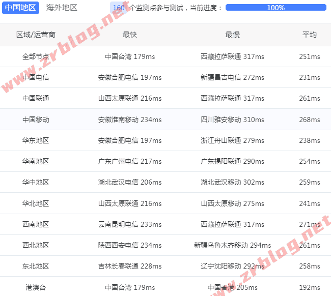 国内三网和港澳台ping测试,美东的延迟,比美西要高30~50ms