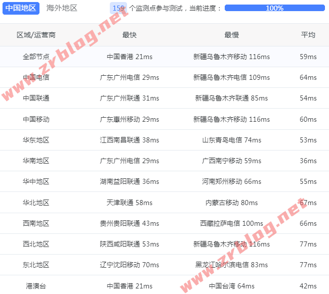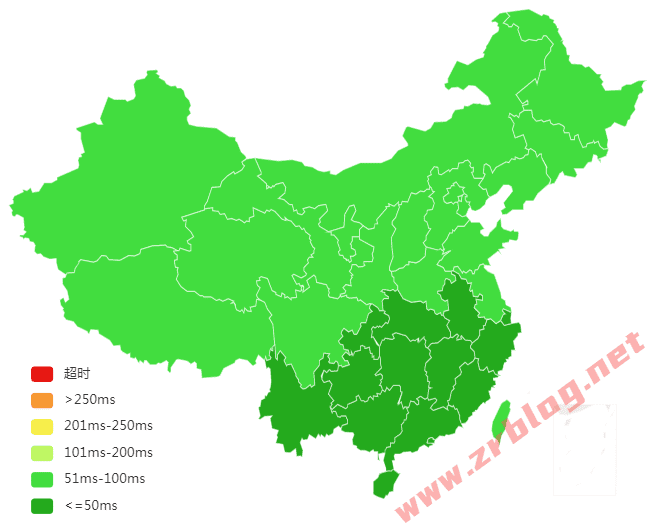 国内三网和港澳台ping测试,直连线路全绿、延迟都很低。