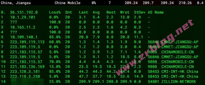 回程方面,三网都是HE线路回国,路径都是从菲律宾机房出来到香港,然后到美国洛杉矶再回中国大陆(移动网络还要洛杉矶到西雅图再回国)。
