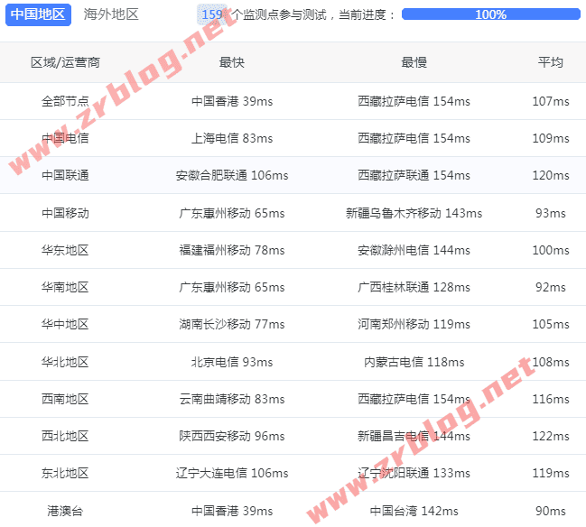 国内三网和港澳台ping测试,大陆优化线路,从日本/香港中转,总体延迟不高。