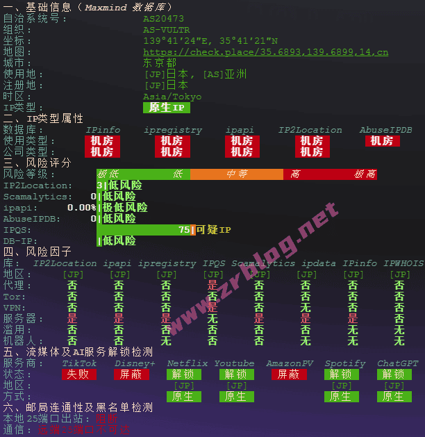 接着测试Vultr亚洲地区云服务器,上一篇我们测试了vultr新加坡VPS(云服务器),今天来到日本,首先是商家第一批上线的日本东京Tokyo, Japan (NRT)机房。经过了这么多年,vultr日本东京VPS性能还怎么样?本文将从云服务器硬件性能、网络带宽、国内三网来去程线路、延迟、IP媒体解锁等各方面进行详细测试并张贴上来,方便大家参考。