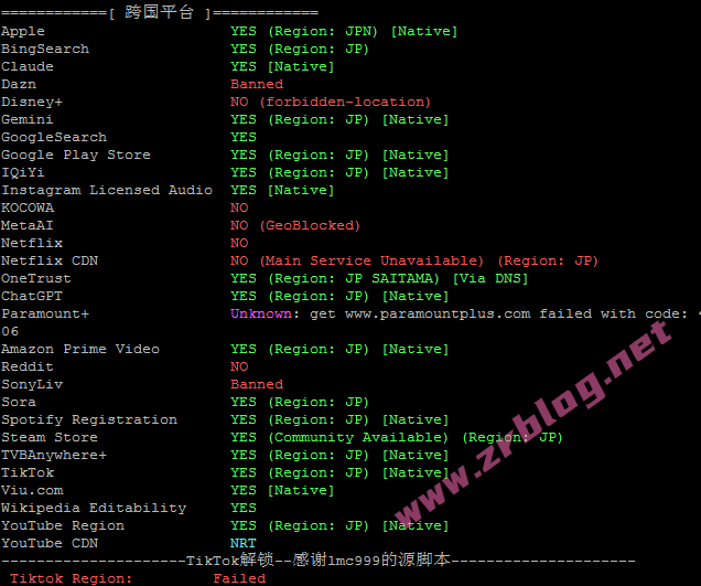 更详细的流媒体解锁情况(来自融合怪脚本):