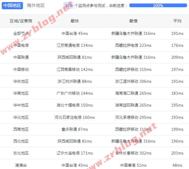 国内三网和港澳台ping测试,来自itdog一百多个节点: