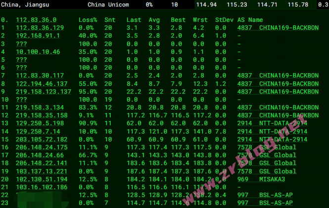 联通跟电信一样的路径,NTT到日本经globalsecurelayer新加坡到机房