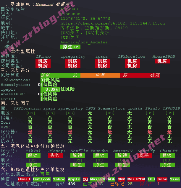 IPv6也测试了但是没截图,也是原生IP,但是解锁只有Net/flix和Chat/GPT。