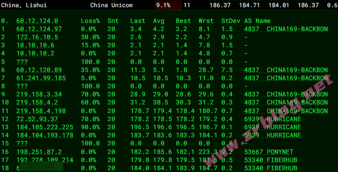 联通骨干网直连洛杉矶联通节点然后HE到拉斯维加斯