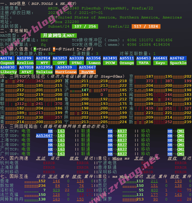 三网去程都是先直连洛杉矶然后去拉斯维加斯,线路走HE或者cogent,回程则都是机房到洛杉矶然后各自pop回国。