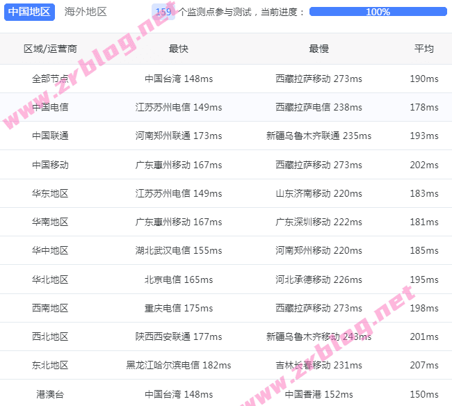 国内三网和港澳台ping测试:美西的正常延迟,电信延迟比移动低。