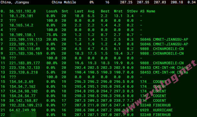 移动用户出国到移动洛杉矶节点然后走cogent到拉斯维加斯