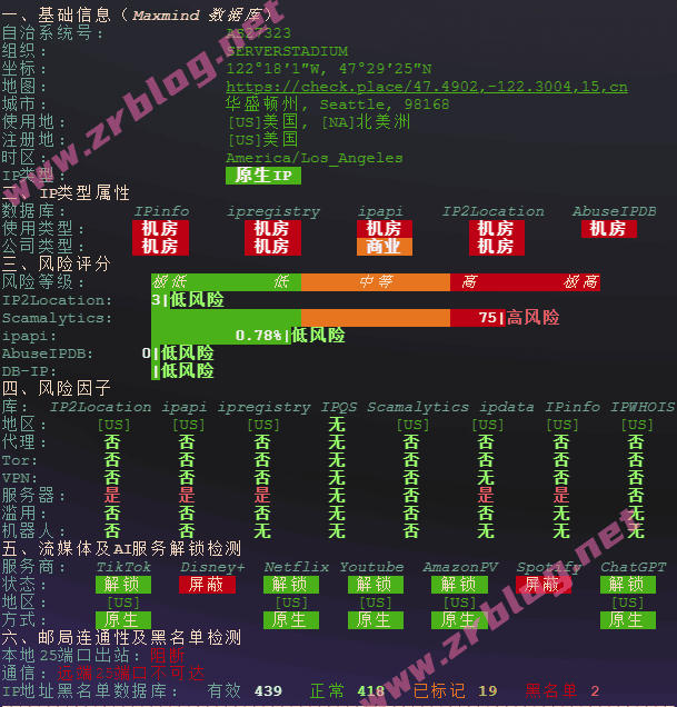 原生IPv4和IPv6,IPv4解锁丰富,IPv6稍差一些,不过IPv6更干净;