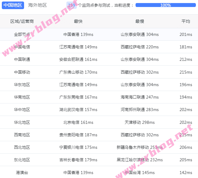 国内三网和港澳台ping测试,来自itdog一百多个节点: