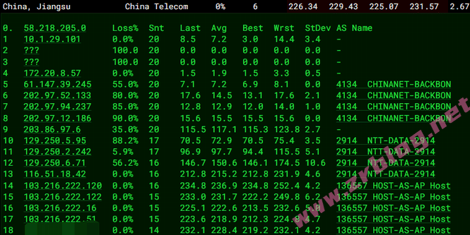 去程路由:电信网络先NTT到日本然后去新加坡机房