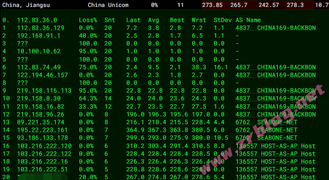 - 北京联通从新加坡出来走cogent经香港、洛杉矶、圣何塞然后回国,上海联通从NTT直接回国,广州联通在机房出来lumen到洛杉矶然后回国;