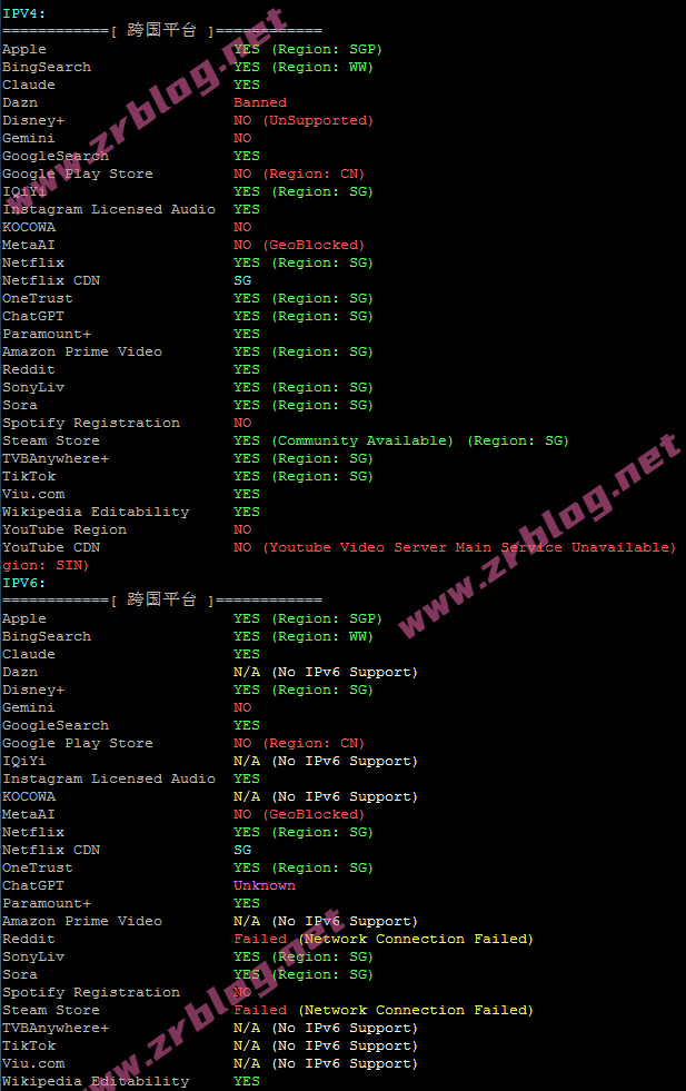 更详细的流媒体解锁情况(来自融合怪脚本,包括IPv4和IPv6):