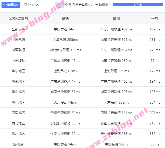 国内三网和港澳台ping测试,来自itdog一百多个节点: