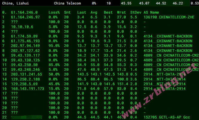 去程路由:电信网络CN2直连香港然后NTT到机房