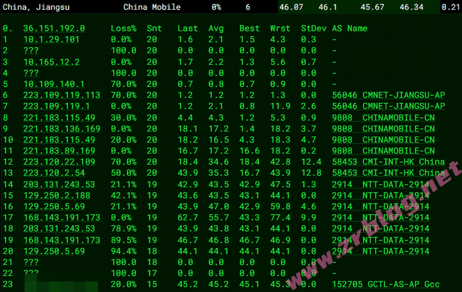 移动骨干网直连香港然后NTT到机房