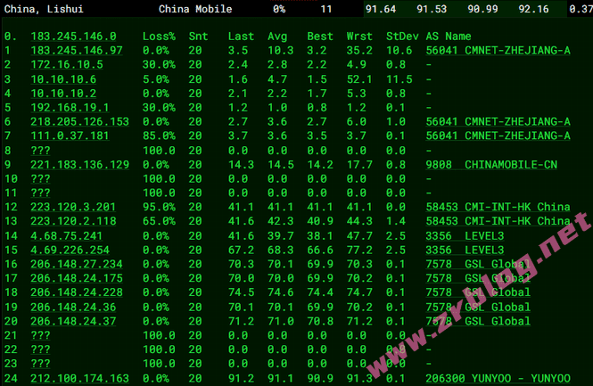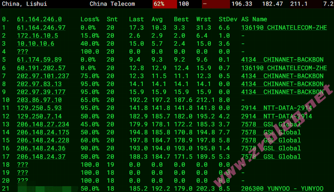 去程路由:电信宽带走NTT到日本然后GSL到机房