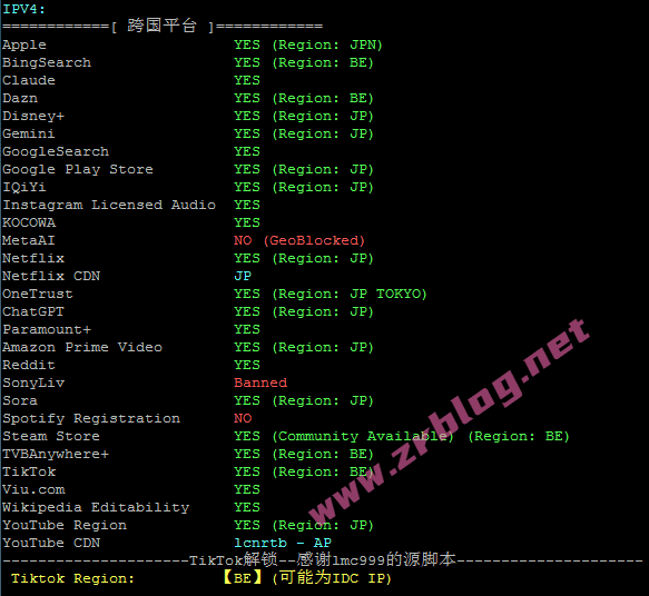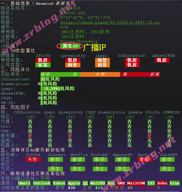 IP信息:广播IP,部分解锁(这个脚本测试不准,用了几个在线网页检查都是广播IP,NQ脚本写原生)