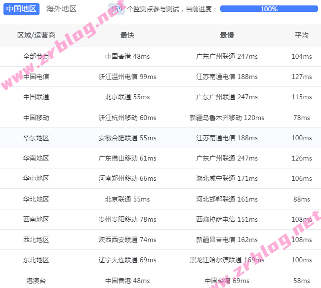 国内三网和港澳台ping测试,来自itdog一百多个节点: