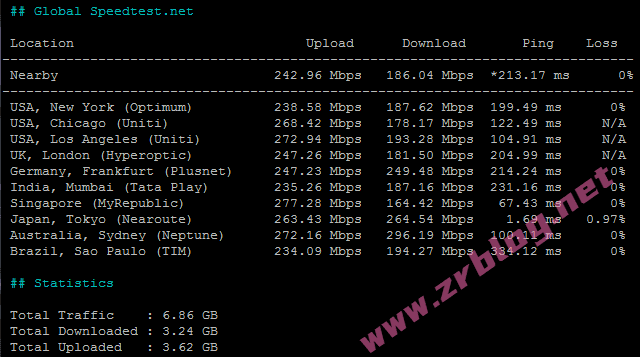 中奖机器采用Intel金牌6133 CPU(主频2.5GHz)、1GB内存、10GB硬盘、300M端口带宽,安装的操作系统为Debian12纯净版本。
