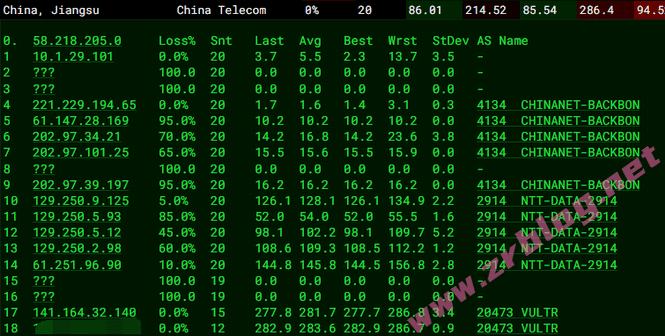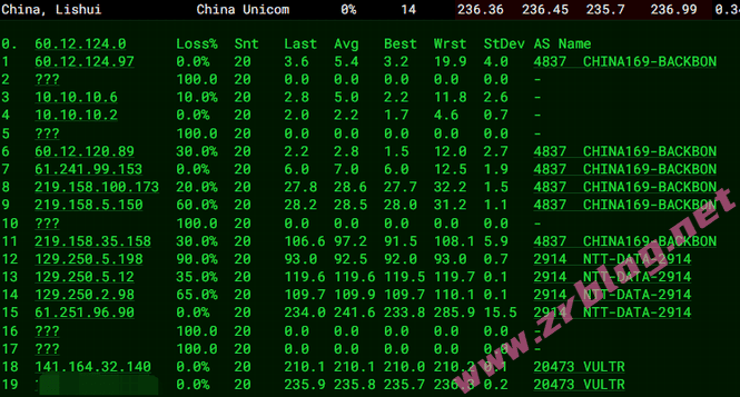 具体的回程路由信息: