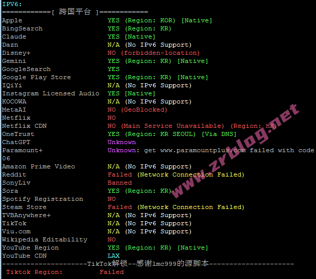 更详细的流媒体解锁情况(来自融合怪脚本):包括了IPv4和IPv6