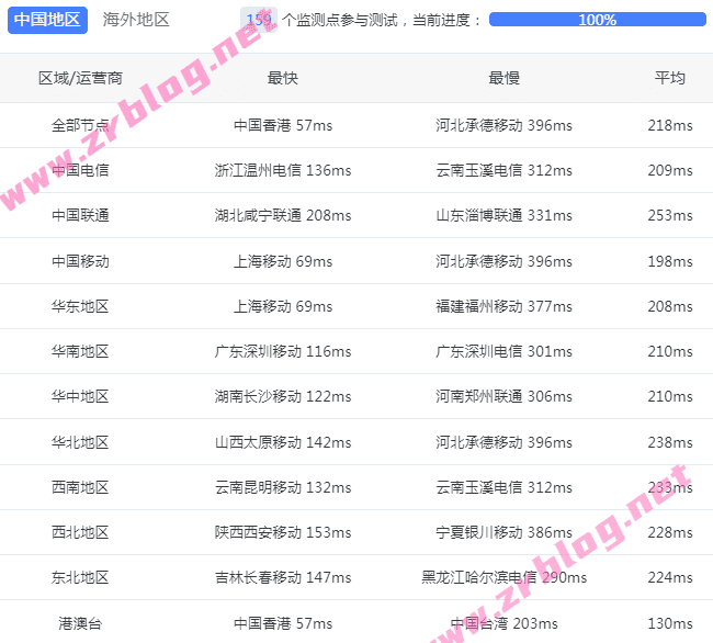 国内三网和港澳台ping测试,来自itdog一百多个节点:
