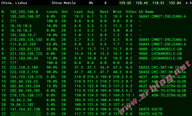 移动用户出网走Telstra经香港到首尔,也是三网延迟最低的