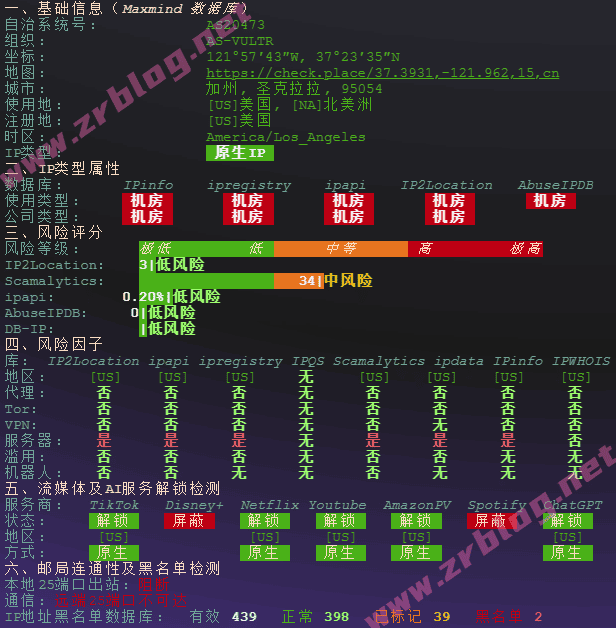 下面是IPv4信息:原生IP,TikTok/ChatGPT都可以解锁