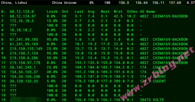 联通用户直连圣何塞联通节点然后Cogent到机房