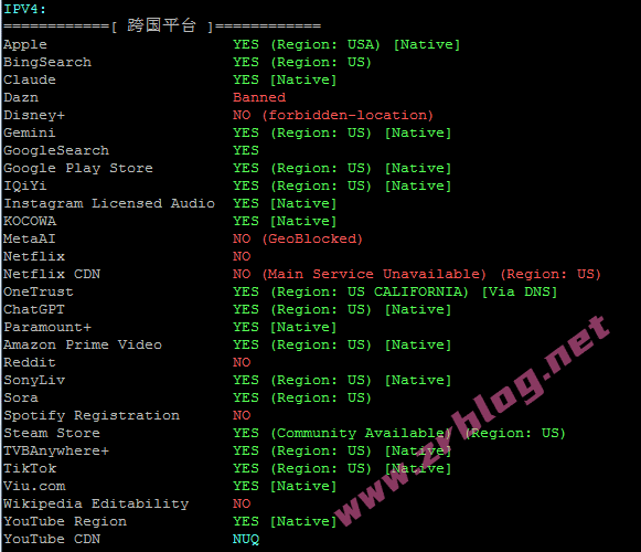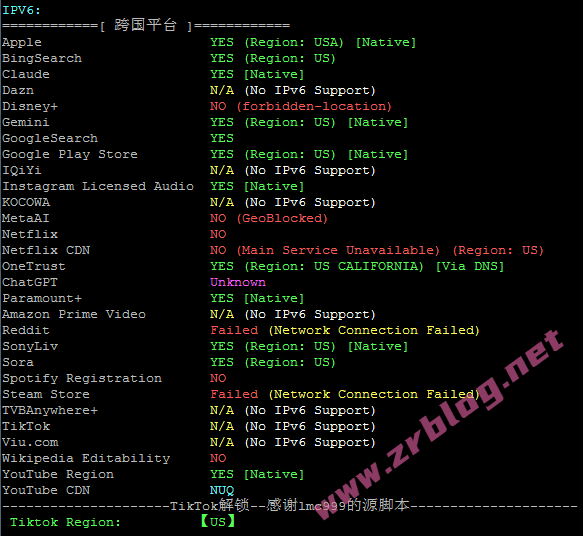 更详细的流媒体解锁情况(来自融合怪脚本):IPv4解锁比IPv6更丰富,都是原生IP