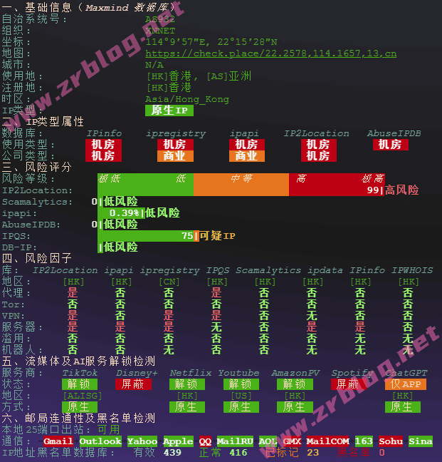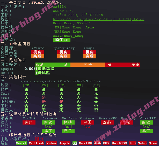 下面是IPv4信息:我选的原生IP,感觉这个检测是不是不准,TikTok香港应该无法解锁的,但是识别成新加坡解锁了