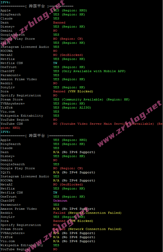 更详细的流媒体解锁情况(来自融合怪脚本):IPv4+IPv6
