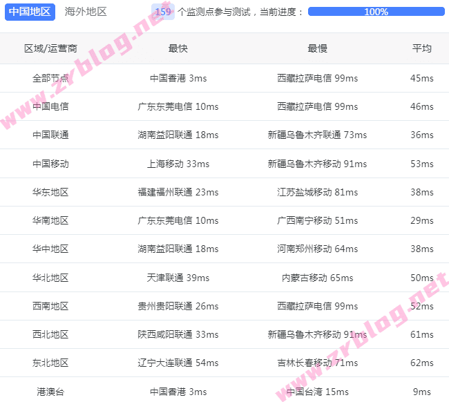 国内三网和港澳台ping测试,来自itdog一百多个节点: