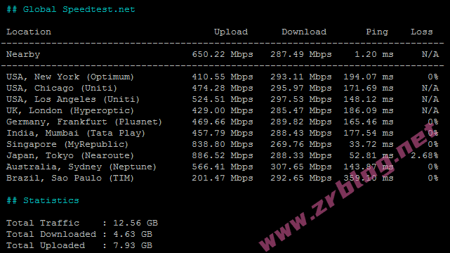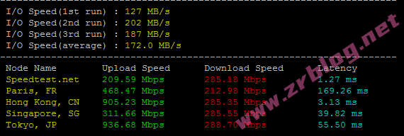 bench一键包磁盘IO和带宽信息,I/O大概在172MB/s的样子,带宽远超套餐限额