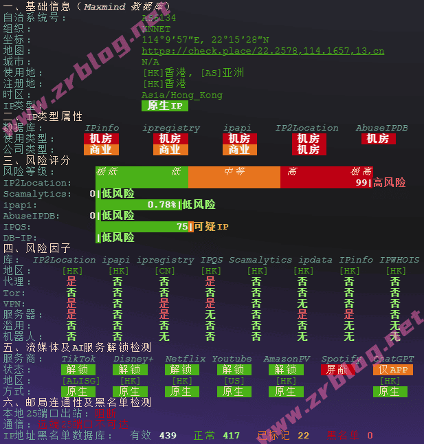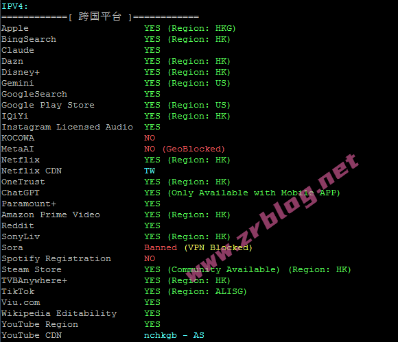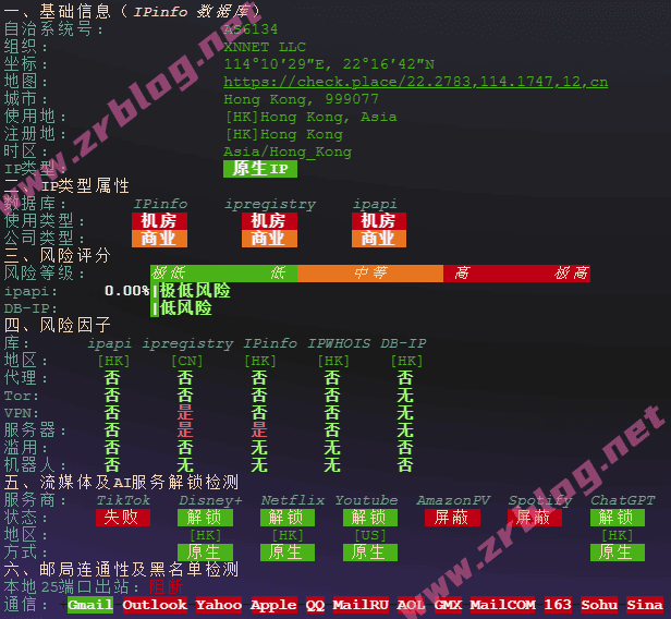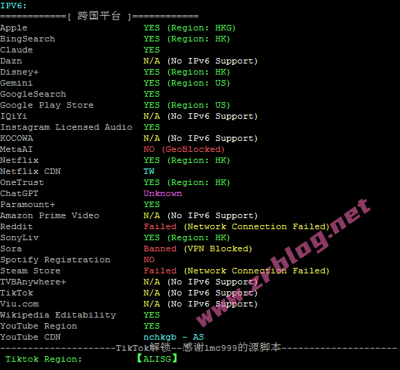 IPv6也是原生IP,ChatGPT和TikTok禁了香港,这个脚本却检测可以解锁,建议参考后面测试结果。