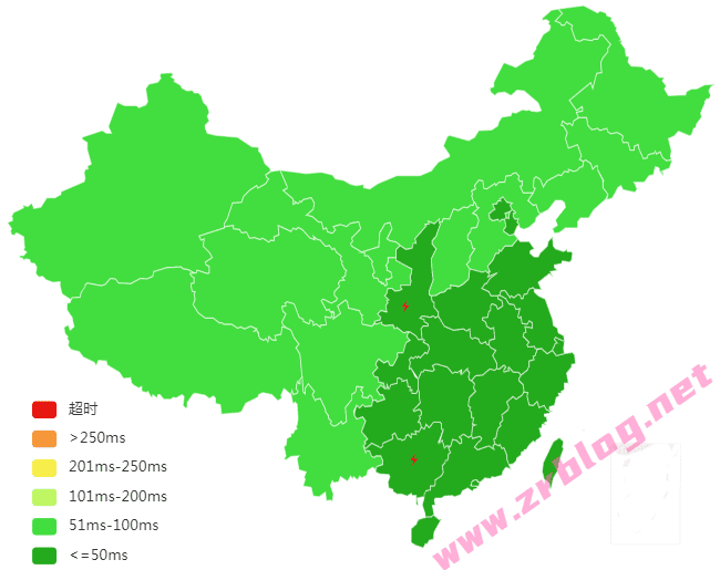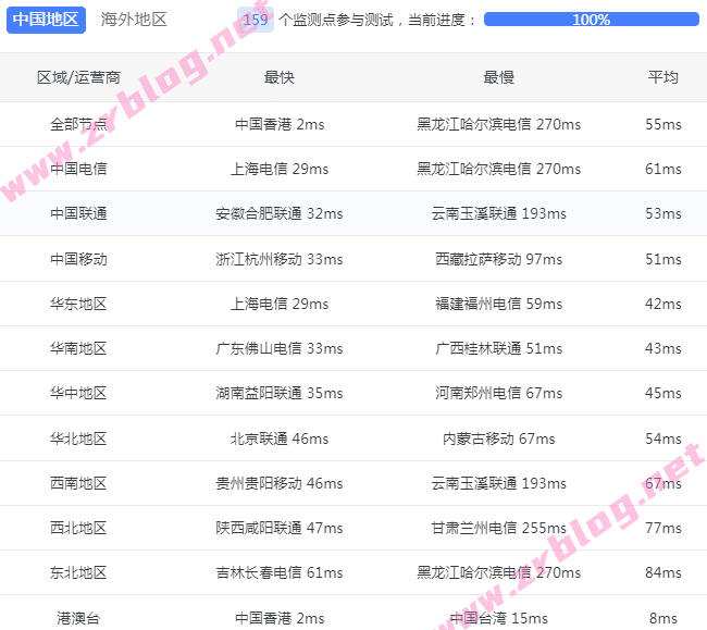 国内三网和港澳台ping测试,来自itdog一百多个节点: