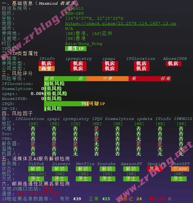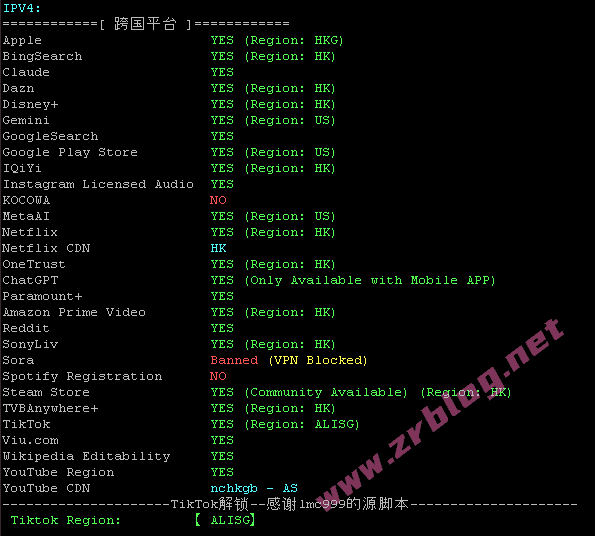 更详细流媒体解锁情况(来自融合怪脚本):不确定是不是脚本问题,香港原生IP被识别到新加坡解锁TikTok