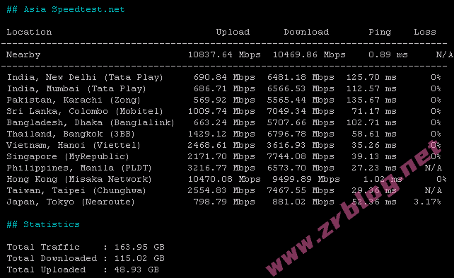 - 先说优点:zenlayer香港BGP云服务器带宽大,真10Gbps端口,我跑一个speedtest亚洲节点都干掉了163GB流量!