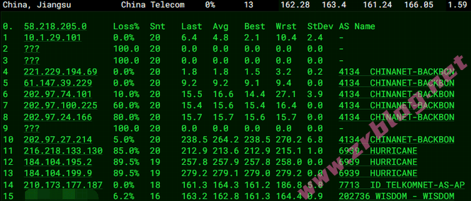 电信去程先直连美国圣何塞电信节点,然后走HE到日本东京