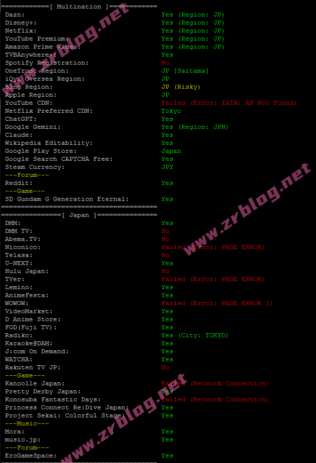 更详细的流媒体解锁情况(来自融合怪脚本):