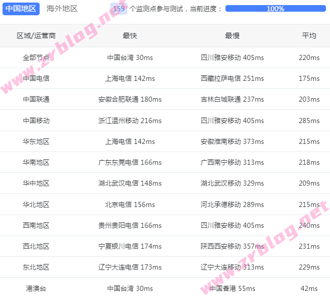 国内三网和港澳台ping测试,来自itdog一百多个节点: