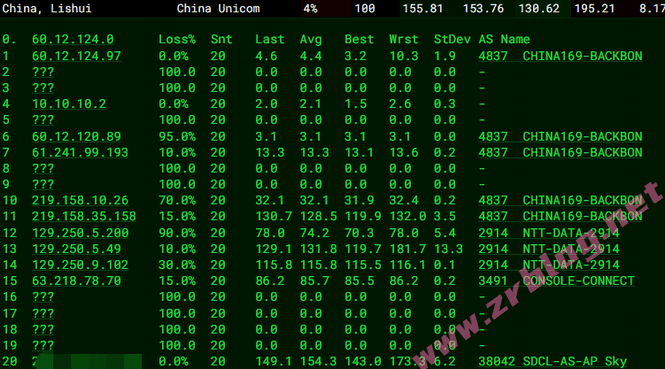 - 北京/上海联通出机房NTT到中国大陆,广东联通则Lumen经日本东京、美国洛杉矶再回来;