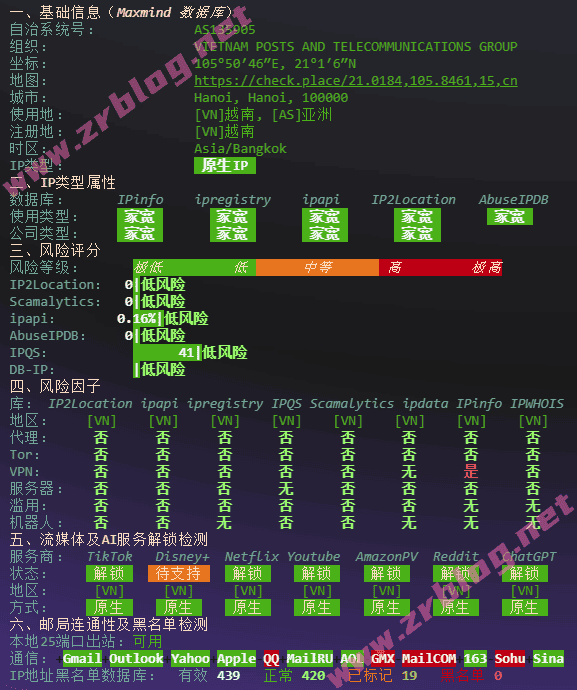 IP信息:越南原生IP,解锁优秀,IP家宽属性